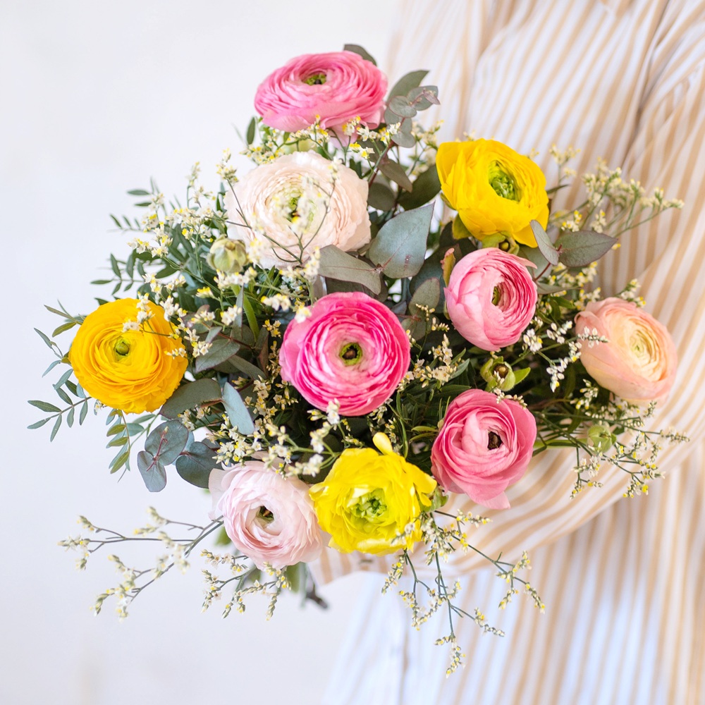 Ranunkel är en ljuvligt vacker blomma. Blommorna är fylliga med hundratals kronblad och de finns i sprakande karamellfärger. Ranunkel passar alla tillfällen, kan vara både lekfull och romantisk, och är lätt att bli förtjust i. Ranunkel är ett vanligt inslag i våra härliga buketter som du kan skicka som Blommogram.
