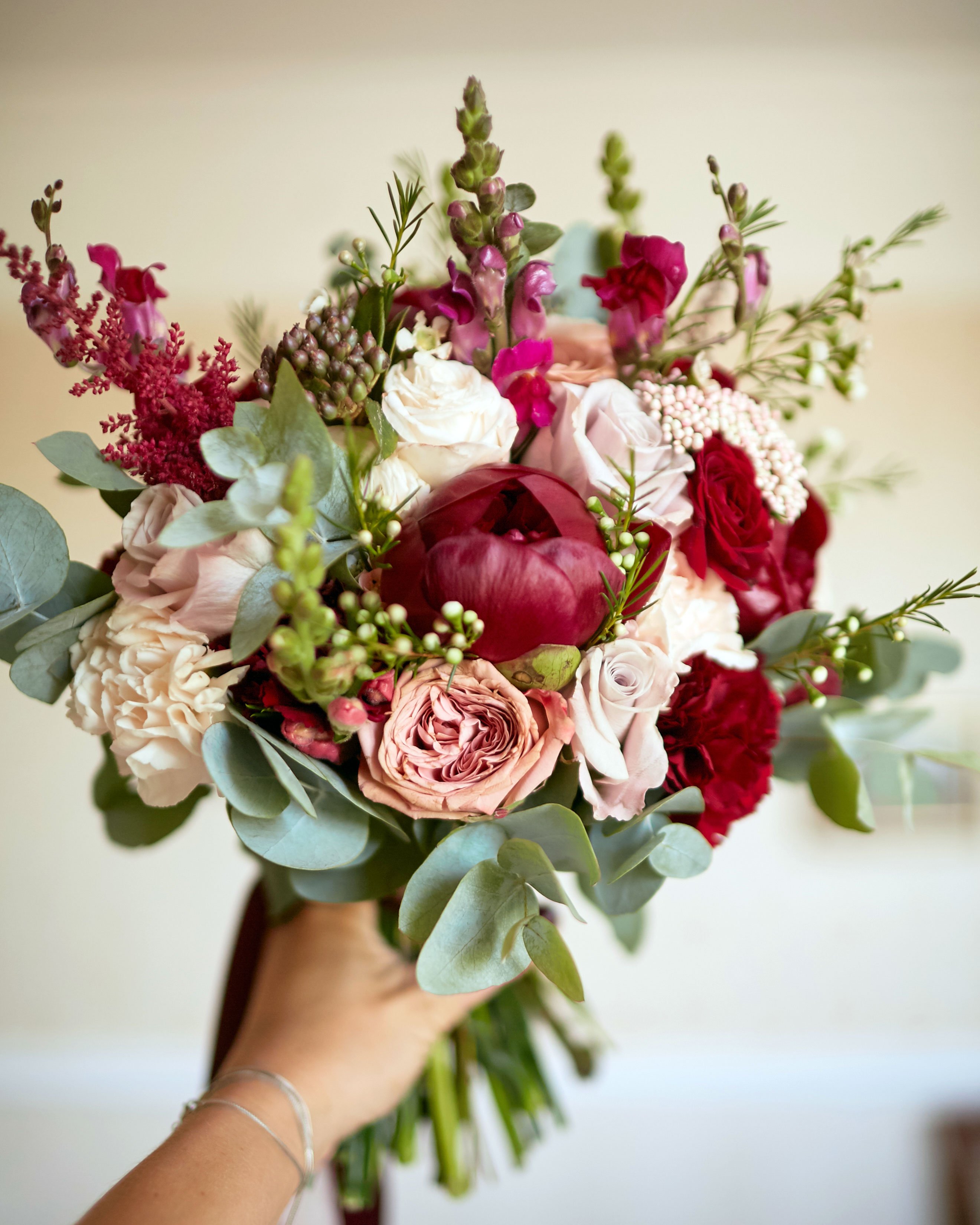 – Den innehåller brudparets favoritfärger och blommor i säsong, gärna doftande sorter som luktärter, lövkoja eller liljekonvalj. Runt stjälkarna binds sidenband, som får fladdra i vinden.