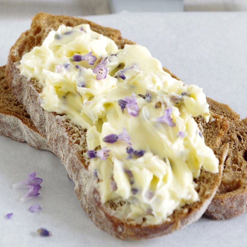 Kryddsmör kan göras på väldigt många sätt och anpassas efter just din smak. En spännande krydda är lavendelns goda och väldoftande blommor.