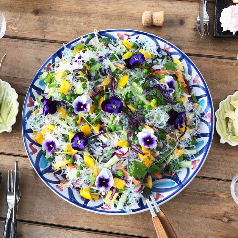 Gör en god sommarsallad med fräscha primörer, så som rödbetor, morötter, sparris och olika salladssorter. Tips är att balansera smakerna med något salt, något sött och något surt för att få en härlig blandning. Toppa sedan salladen med små penséer för en extra somrig sallad.