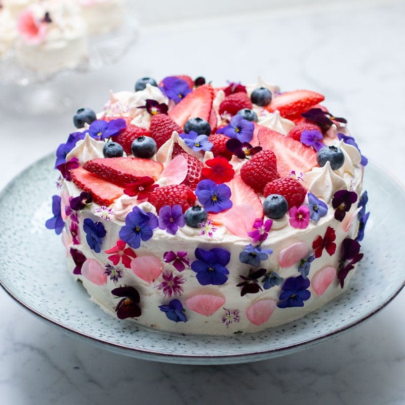 Blommor som dekoration på tårtor och bakverk passar till alla sommarens fester och kalas. Gör din favorittårta eller -kaka och förgyll den med ätbara blommor i vackra färger.