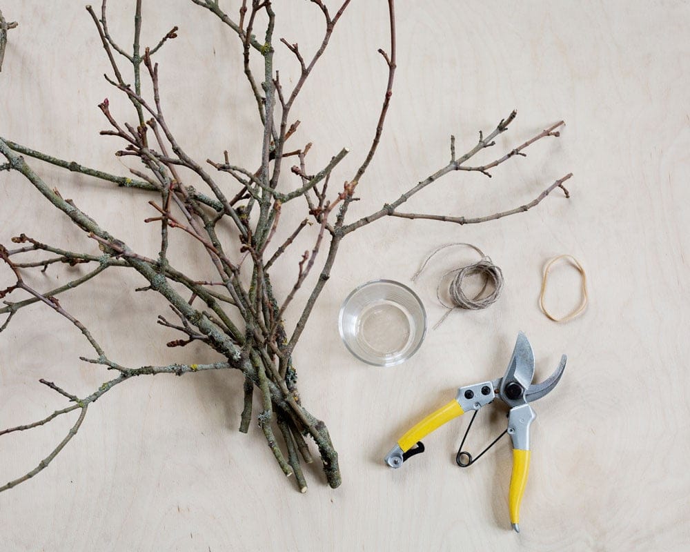 1. Klipp ner de grenar du plockat till lagom storlek för glaset.