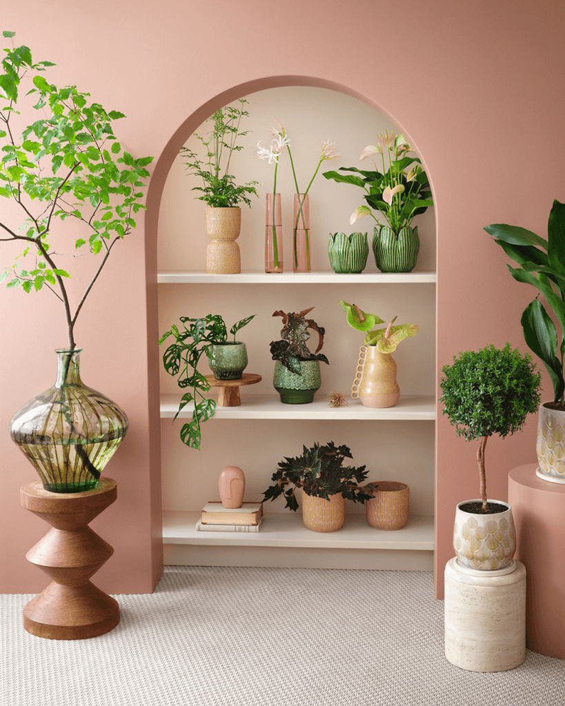Grönt är ett annat vinnande val, i såväl kalla som varma nyanser. Färgen pryder allt från mode till krukor, som Flower, och vasen Palermo här nedan i återvunnet glas (finns i utvalda Interflorabutiker). Vackra att kombinera med årets färg, Peach Fuzz, en sammetslen och sofistikerad nyans, som ingår i färgsystemet Pantone.