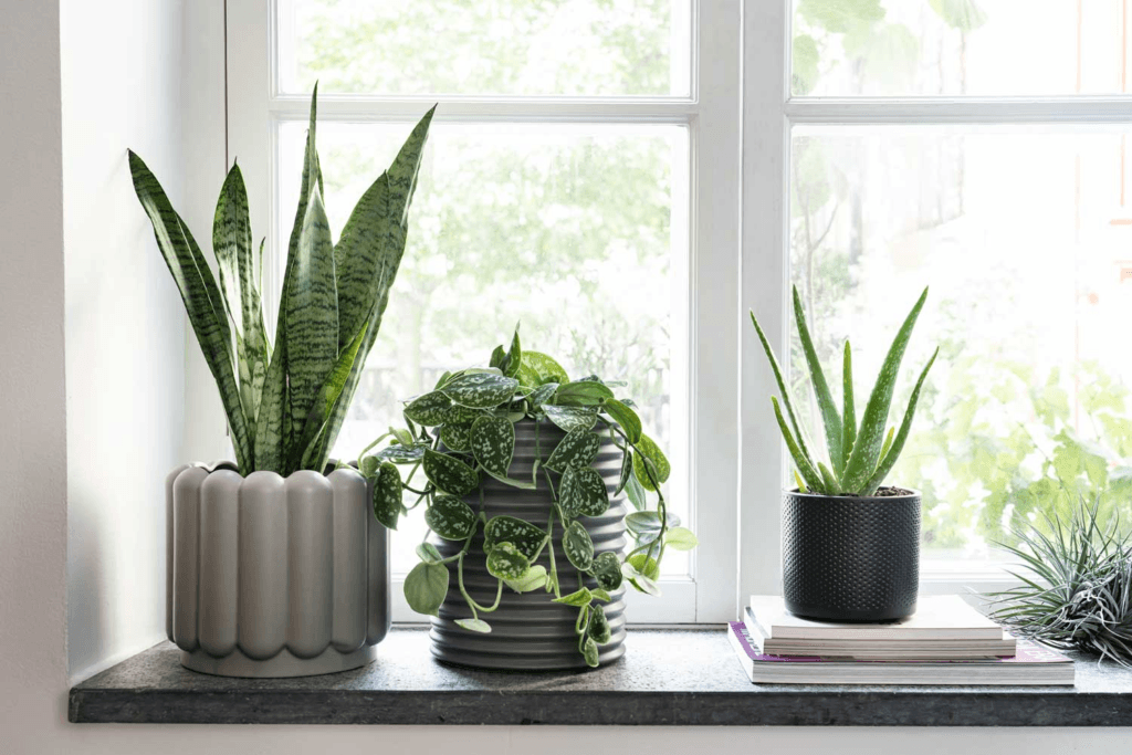 På skrivbordet passar det ofta med lite mindre växter som inte tar så mycket plats. Jobba sedan med mellanstora och stora växter på fönsterbrädan, i en bokhylla eller på golvet.
